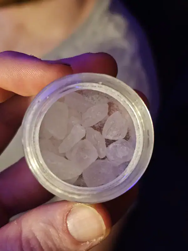 Fire , nice big shards . the shipping updates where a little spacey , it went from being label printed for like 3 or 4 days too package arriving the next day lol. weight of product and jar without lid are displayed on the side so you don’t have to mess with it too much to check it . Probably about .4 got dusted I’m assuming during transportations but still plenty of nice big crystals in there. but as of right now this is the best pricing i can find and they deliver so very very happy