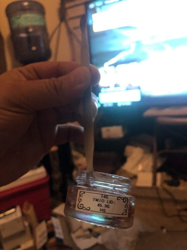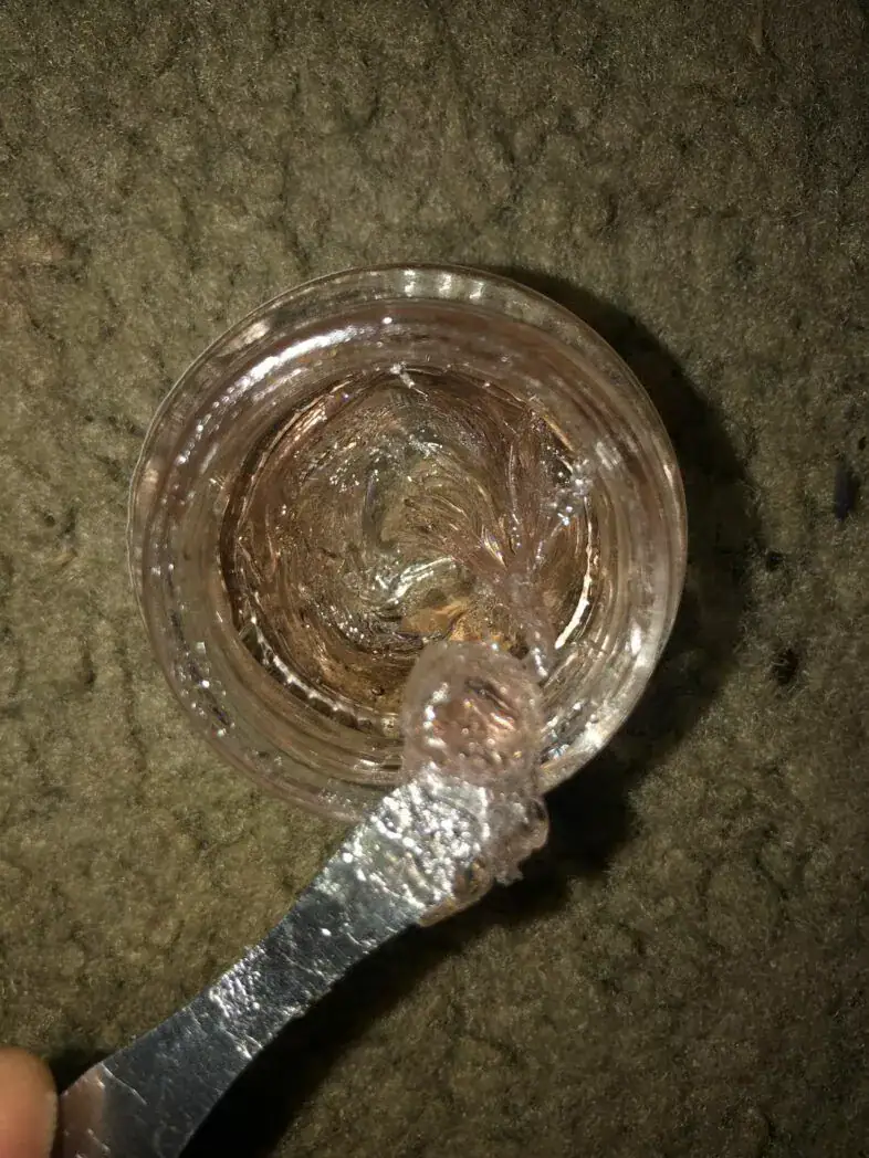 It’s a little thicker than other distillates, but it works great & gets you high. I like the purple/pinkish color to it as well.